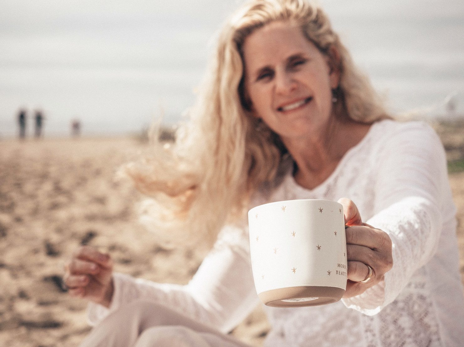 Today’s cup of decaf is at the beach.